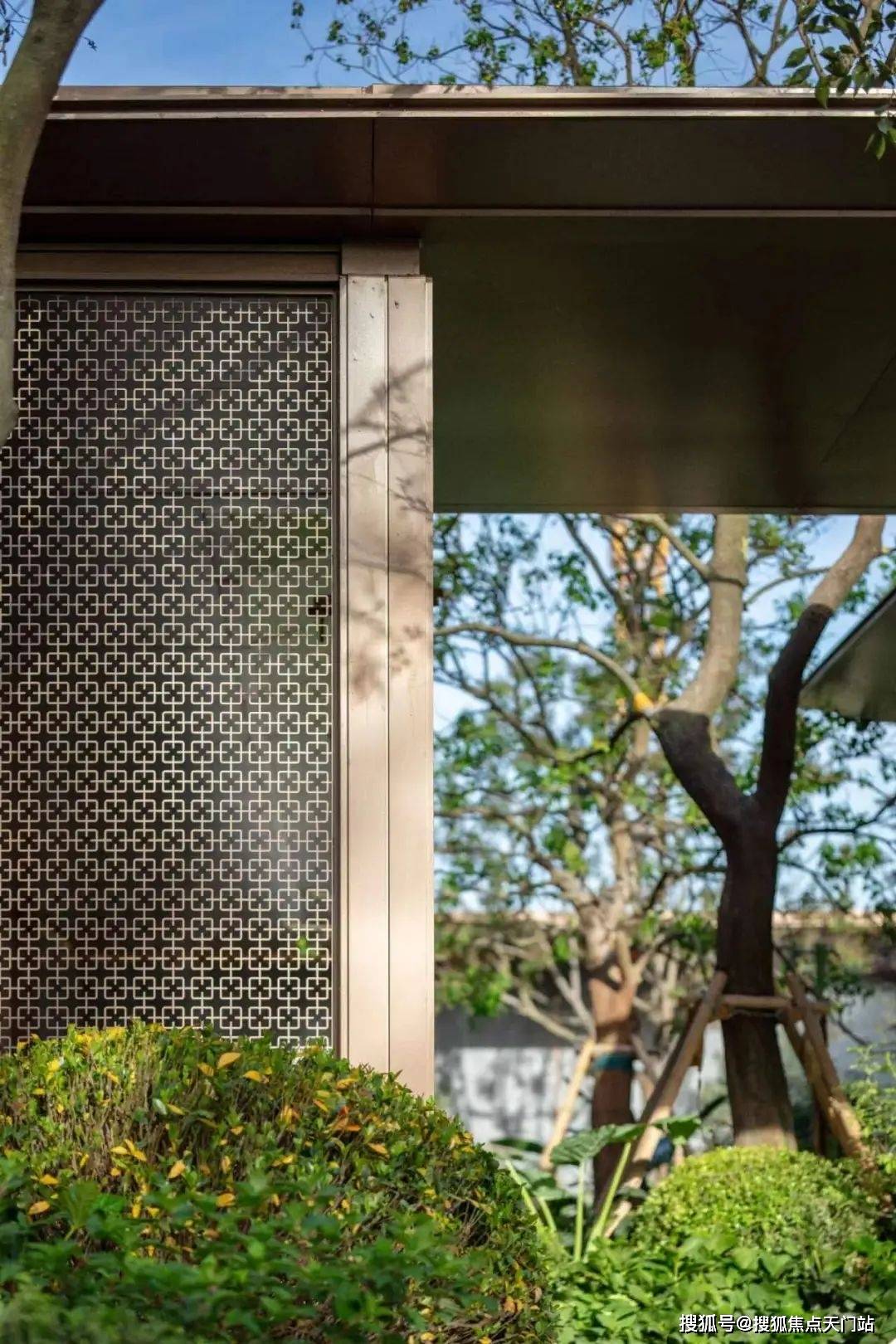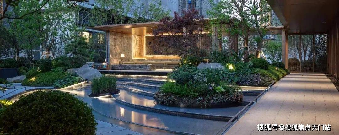 以上均已实景呈现,要晓得上海曾经很少有项目正在社区内引入水景了,种植了数株高峻细长的河桦和朴树,并镶嵌金属线条、就连地面都采用了夜里雪仿石砖
